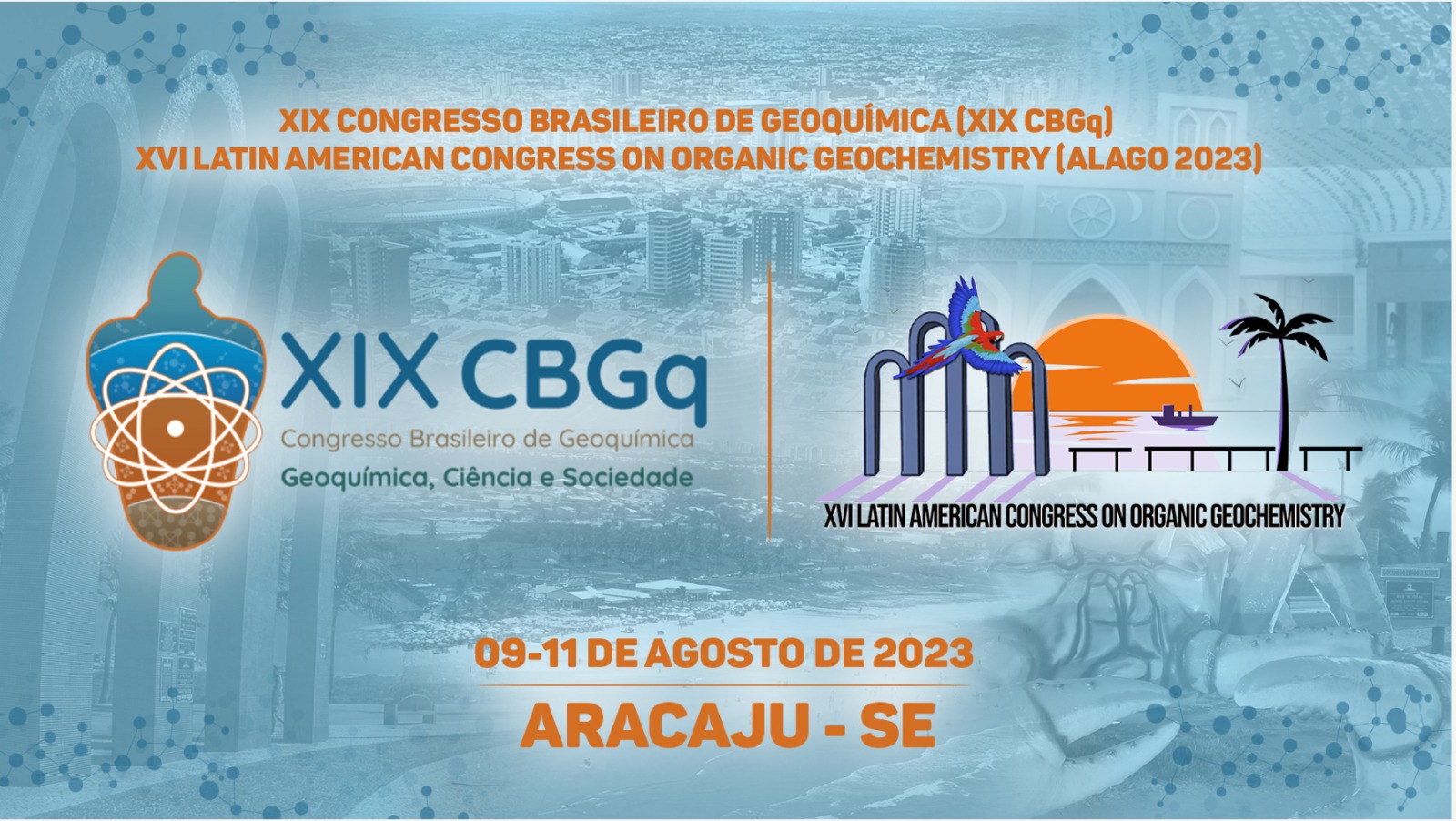 No período de 09 a 11 de agosto de 2023, a Sociedade Brasileira de Geoquímica (SBGq) em conjunto com a Associação Latino-Americana de Geoquímica Orgânica (ALAGO) promoverão o XIX Congresso Brasileiro de Geoquímica (XIX CBGq) e o XVI Latin American Congress on Organic Geochemistry (ALAGO 2023), em Aracaju, Sergipe. A realização conjunta do XIX CBGq e ALAGO 2023 reflete um momento ímpar no mundo pós-pandemia. Estamos iniciando uma parceria objetivando a retomada dos eventos presenciais e a realização do maior evento dessa temática na América Latina. Esperamos reunir pesquisadores da área da Geoquímica, oriundos de diversos países, para promover o encontro da academia, indústria, entidades públicas e privadas através de palestras, conferências, minicursos, mesas redondas e apresentações de trabalhos técnico-científicos, proporcionando a troca de conhecimento e propostas de ideias inovadoras e oportunidades de colaboração. Abriremos espaço para que os principais laboratórios geoquímicos e as empresas possam dialogar, de forma a termos um panorama nacional das capacidades analíticas instaladas e demandas presentes e futuras. Os dois congressos ocorrerão de modo paralelo e contará com uma programação científica de primeira linha em continuação a tradição de dos eventos anteriores. Nós esperamos tê-los conosco neste grande e épico evento na charmosa cidade de Aracaju, Sergipe e que aprecie a nossa programação científica.